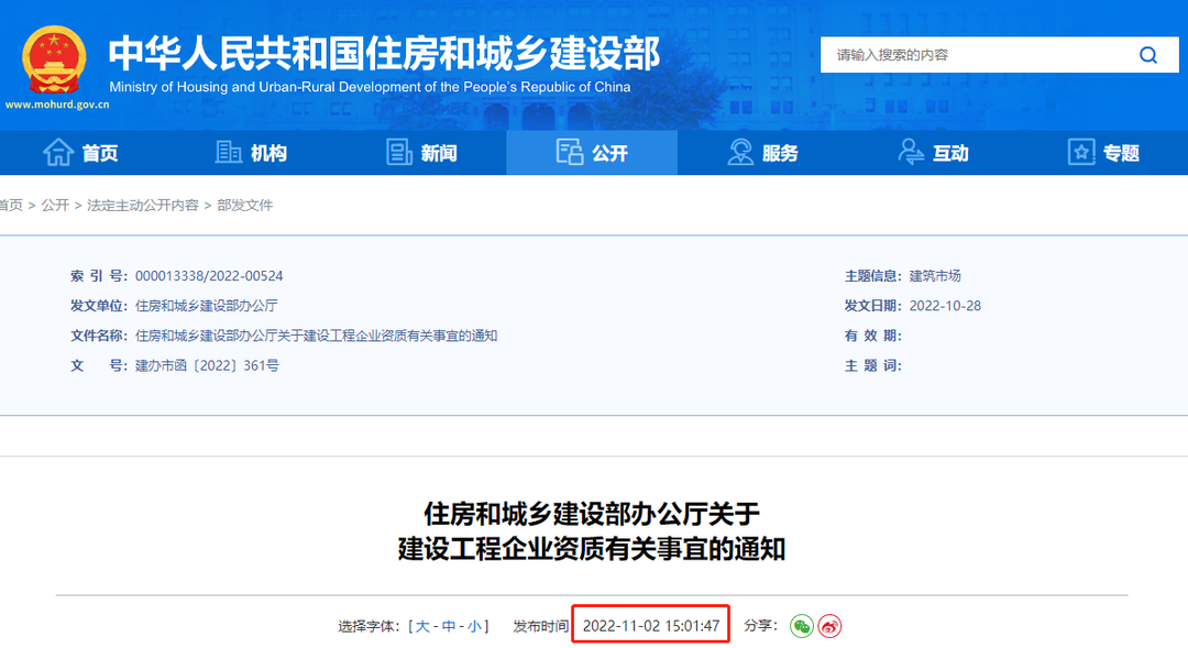 11月2日,住建部官网发布《住房和城乡建设部办公厅关于建设工程企业资质有关事宜的通知》: