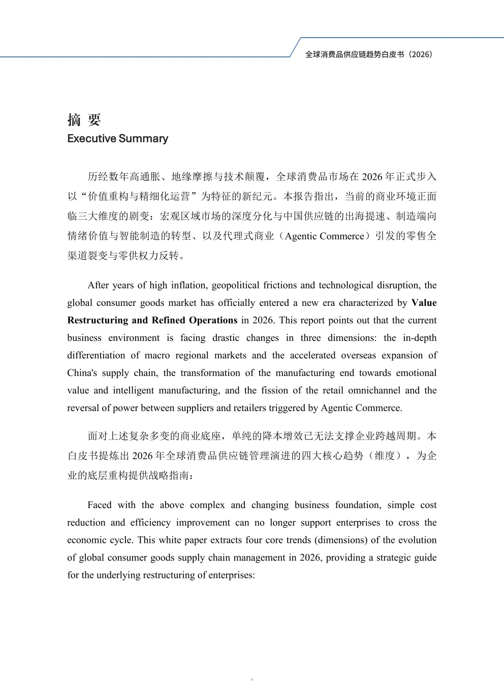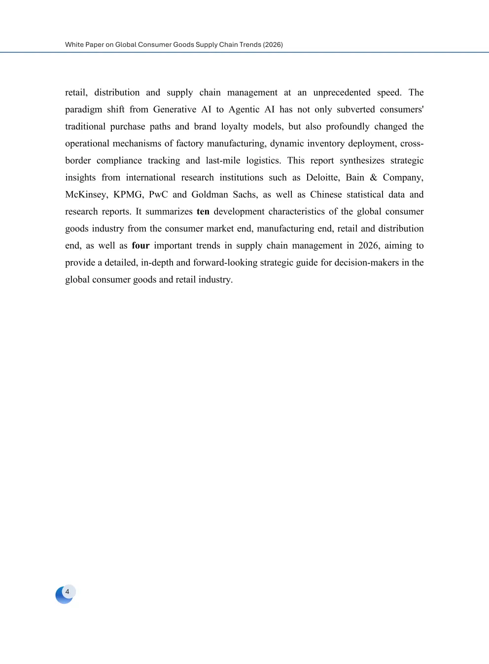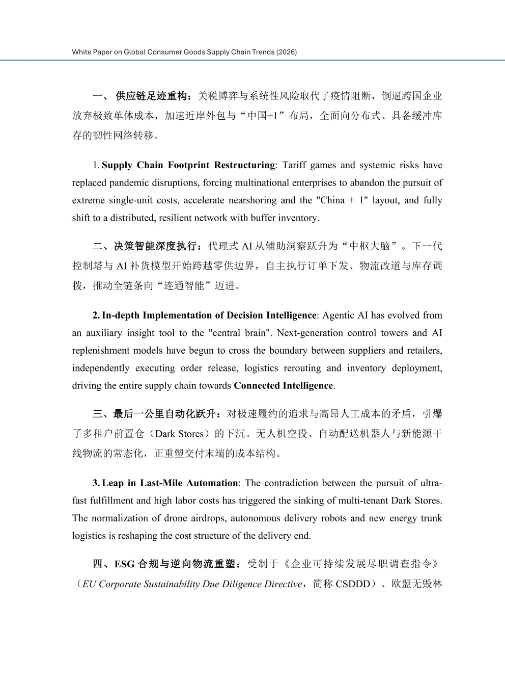 《白皮书》系统梳理了全球消费品供应链管理演进的深刻变革,提炼出四大核心趋势与四项战略建议,为全球消费品与零售行业决策者提供了一份面向未来的战略指南。