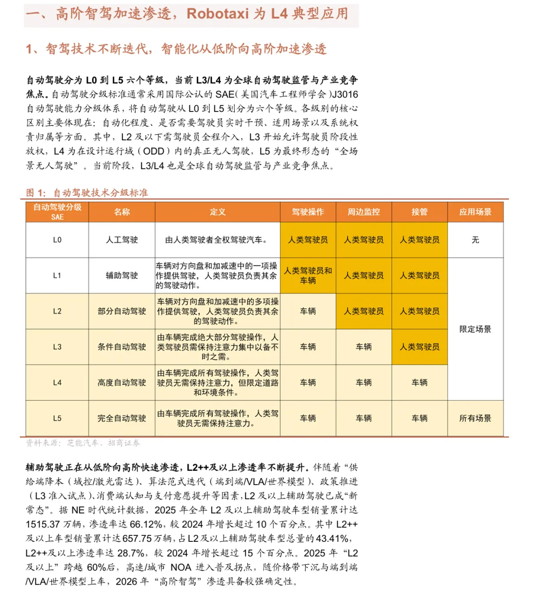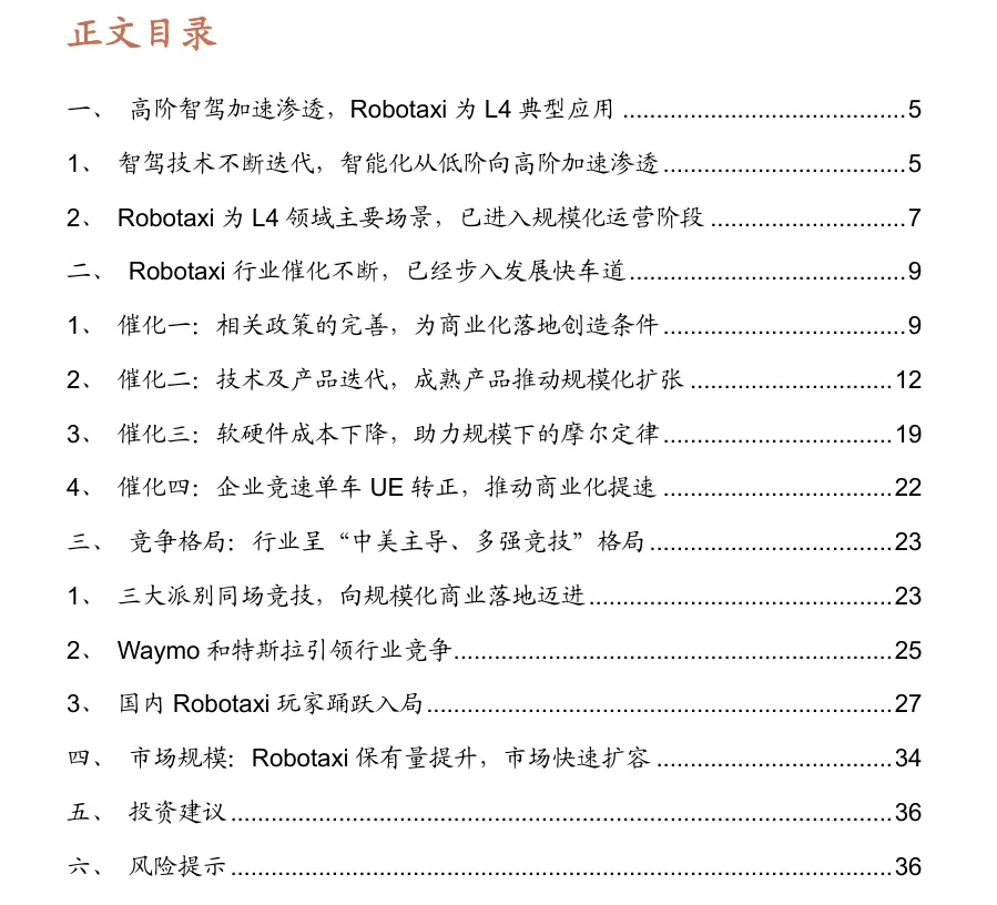 摘要:2026年Robotaxi行业进入规模化商业化关键期,政策放开、技术成熟、成本下降、单位经济模型转正四大催化共振。行业呈现中美主导、多强竞技格局,Waymo、特斯拉领跑全球,小马智行、文远知行、萝卜快跑等国内头部企业已在核心城市实现单车盈利。预计2025-2030年全球自动驾驶出行市场CAGR达232.7%,中国增速253.6%。投资聚焦车企、运营平台及供应链,推荐特斯拉、小鹏、小马智行、文远知行,关注德赛西威、禾赛科技等核心零部件标的,提示行业进展、安全与竞争风险。