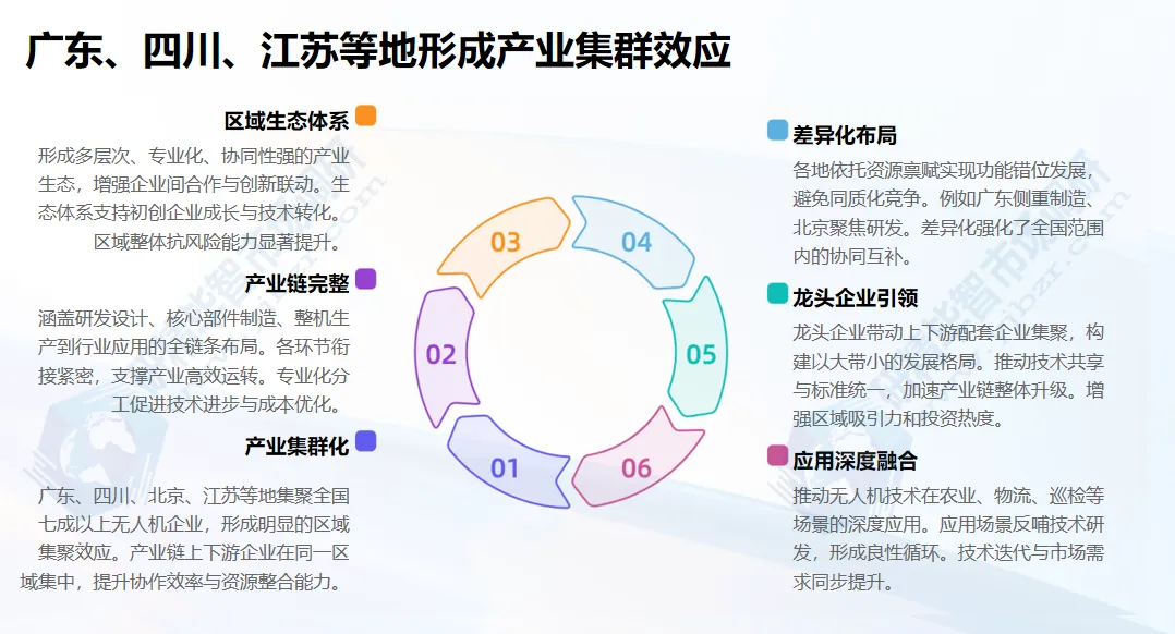 北京研精毕智研究报告指出,当前市场竞争的核心已从“产品性能比拼”转向“产业链整合与生态构建”。头部企业通过垂直整合上游核心零部件、拓展下游应用场景、搭建技术开放平台等方式巩固优势;中小企业则通过聚焦特定场景、提供专业化解决方案实现突围,例如专注于消防无人机的中卓时代、聚焦电力巡检的亿嘉和等企业,在细分领域市占率均超20%。此外,区域集群效应显著,广东、四川、北京、江苏等省份聚集了全国70%以上的无人机企业,形成从研发、生产到应用的完整产业生态。