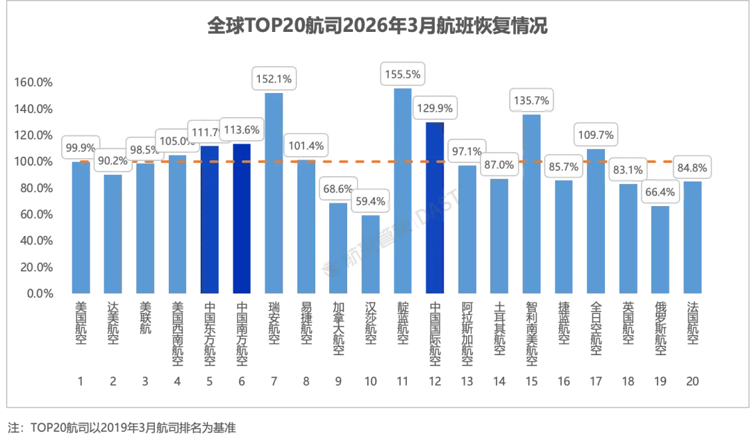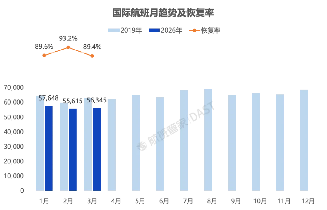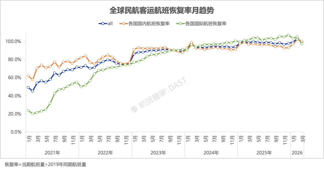 2026年3月,全球民航恢复至2019年同期的99.3%
