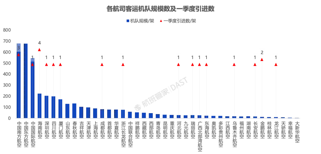 截止2026年一季度末,民航客运运输机队4185架,共16家航司新引进客机22架,新引进飞机涉及机型:B737-MAX8、A320系列、国产客机C919与C909。