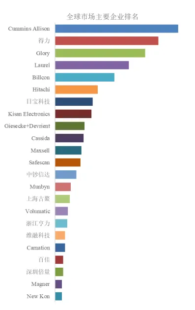 Glory、 Cassida、 Giesecke+Devrient、 Hitachi、 Munbyn、 Safescan、 Kisan Electronics、 Carnation、 Laurel、 Cummins Allison、 Maxsell、 Billcon、 New Kon、 Volumatic、 Magner、 Semacon、 日宝科技、 聚龙、 上海古鳌、 中钞信达、 维融科技、 浙江亨力、 广州康艺、 深圳贝斯特、 百佳、 得力、 深圳倍量、 浙江然鹏、 平阳县梵特电子、 浙江诺贝电子