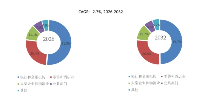 就产品应用而言,目前银行和金融机构是最主要的需求来源,占据大约51.5%的份额。