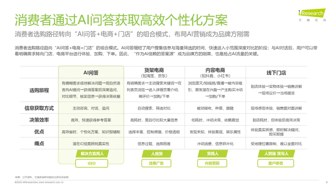 消费者选购路径转向“AI问答+电商+门店”的组合模式,布局AI营销成为品牌方刚需