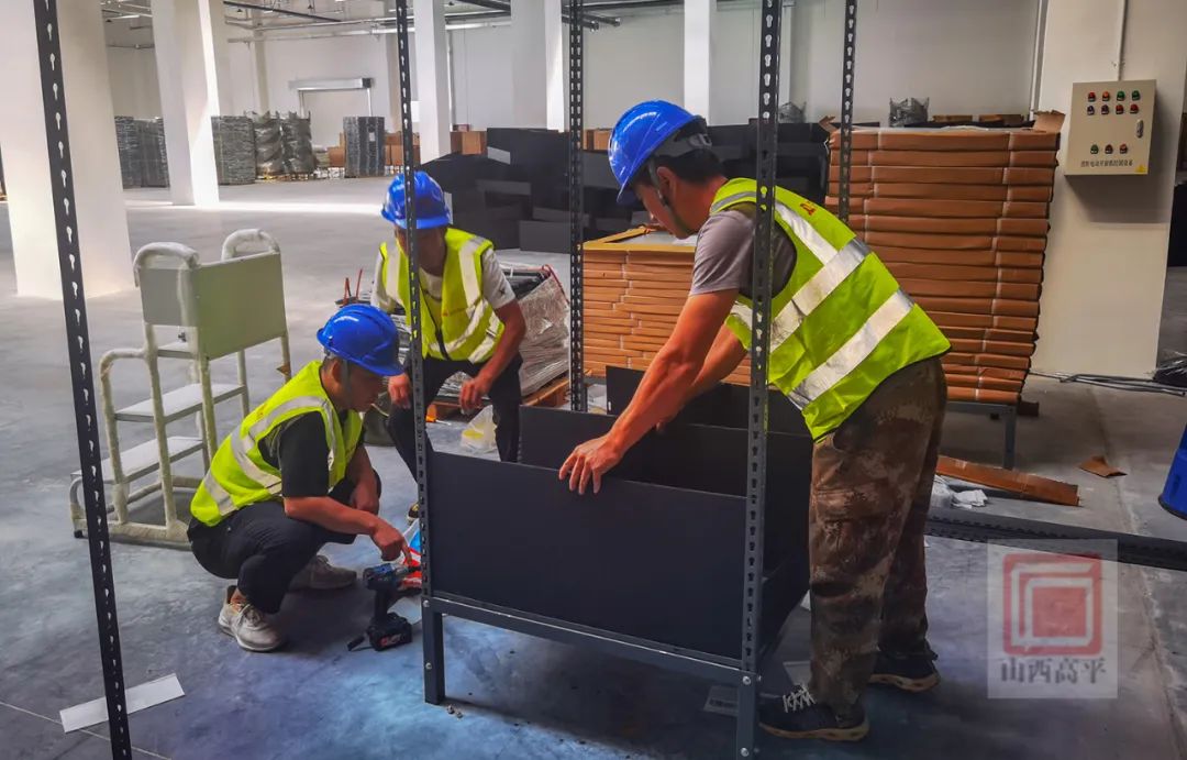 走进二广高速晋东南物流园项目建设现场,以红黄灰为主色调的厂房简约大方、充满活力。厂房内,工人师傅分散在不同区域,正在进行仓储货架的安装以及物流分拣设备的组装。该厂房分为上下两层,将依托京东物流自研的自动化仓储拣选系统和搬运机器人等智能设备,实现智能化立体仓储配送。
