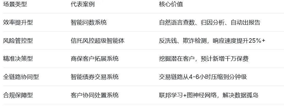 场景类型包括:效率提升型、风险管控型、精准决策型、全链路协同型、合规保障型。