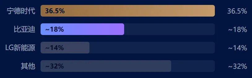 国内市场,宁德时代2026年Q1装机市占率强势反弹至50.1%,时隔5年重夺'半壁江山'。比亚迪份额约17.5%(较2023年峰值26.9%有所下滑),二线厂商国轩高科(6.1%)、中创新航(5.3%)稳步追赶。海外市场,LG新能源份额已降至0.7%,中国厂商主导地位持续强化。