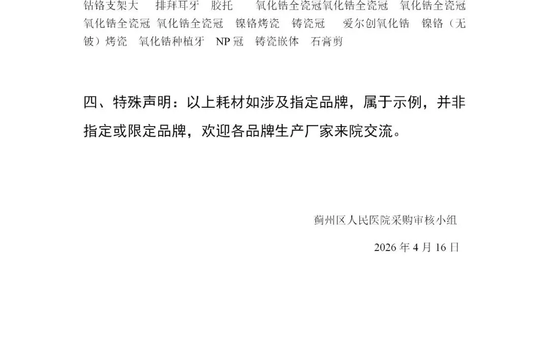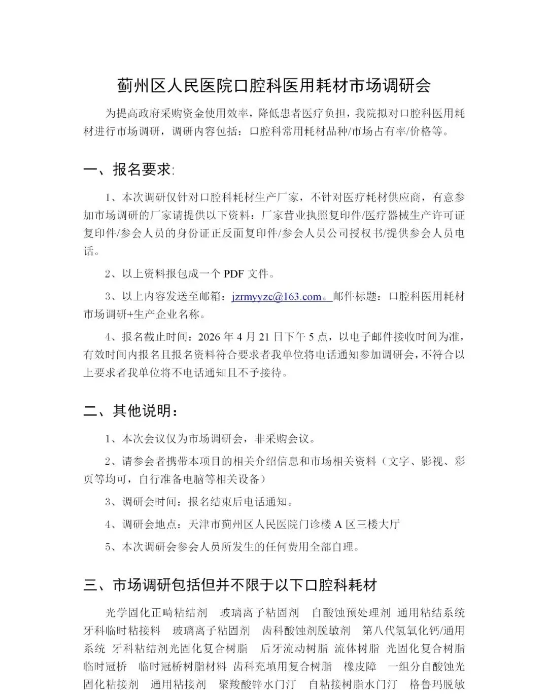 关于蓟州区人民医院口腔科医用耗材市场调研会的公告