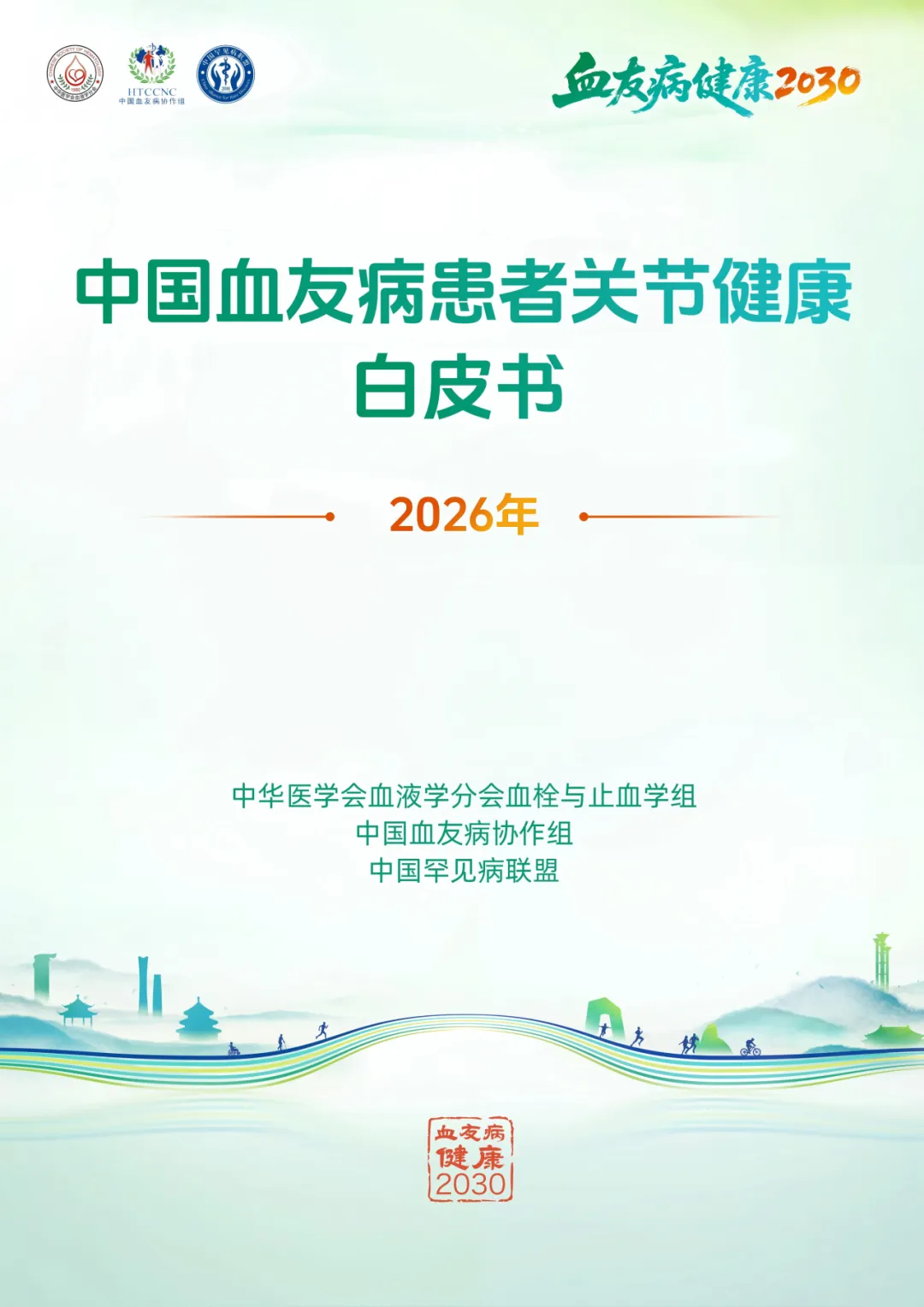 2026 年,中华医学会血液学分会血栓与止血学组、中国血友病协作组、中国罕见病联盟联合发布了《中国血友病患者关节健康白皮书(2026)》。本白皮书旨在填补我国血友病残疾风险系统性调研空白,全面评估关节健康与残疾率,剖析致残核心影响因素,形成关键质控指标与临床管理路径,为降低致残率提供科学依据。