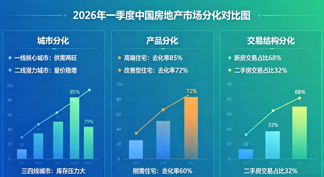 2026年一季度,房地产市场呈现“整体调整、局部企稳、分化加剧”的特征。供给端持续收缩,销售端降幅收窄,一线城市率先回暖。4月起多项新政生效,行业逻辑深刻转变。