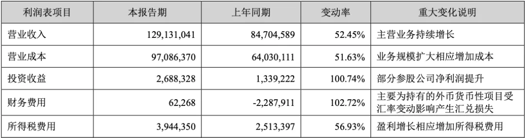 表面看,归母净利润增速(48.52%)略低于营收增速(52.45%)。但如果拆解利润结构,会发现主业的盈利能力其实更强。