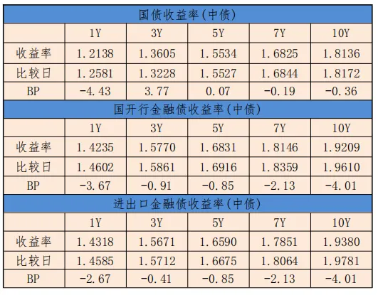 中债进出口金融债曲线整体下行,10年期带动曲线对应期限下行4.01BP,至1.9380%。