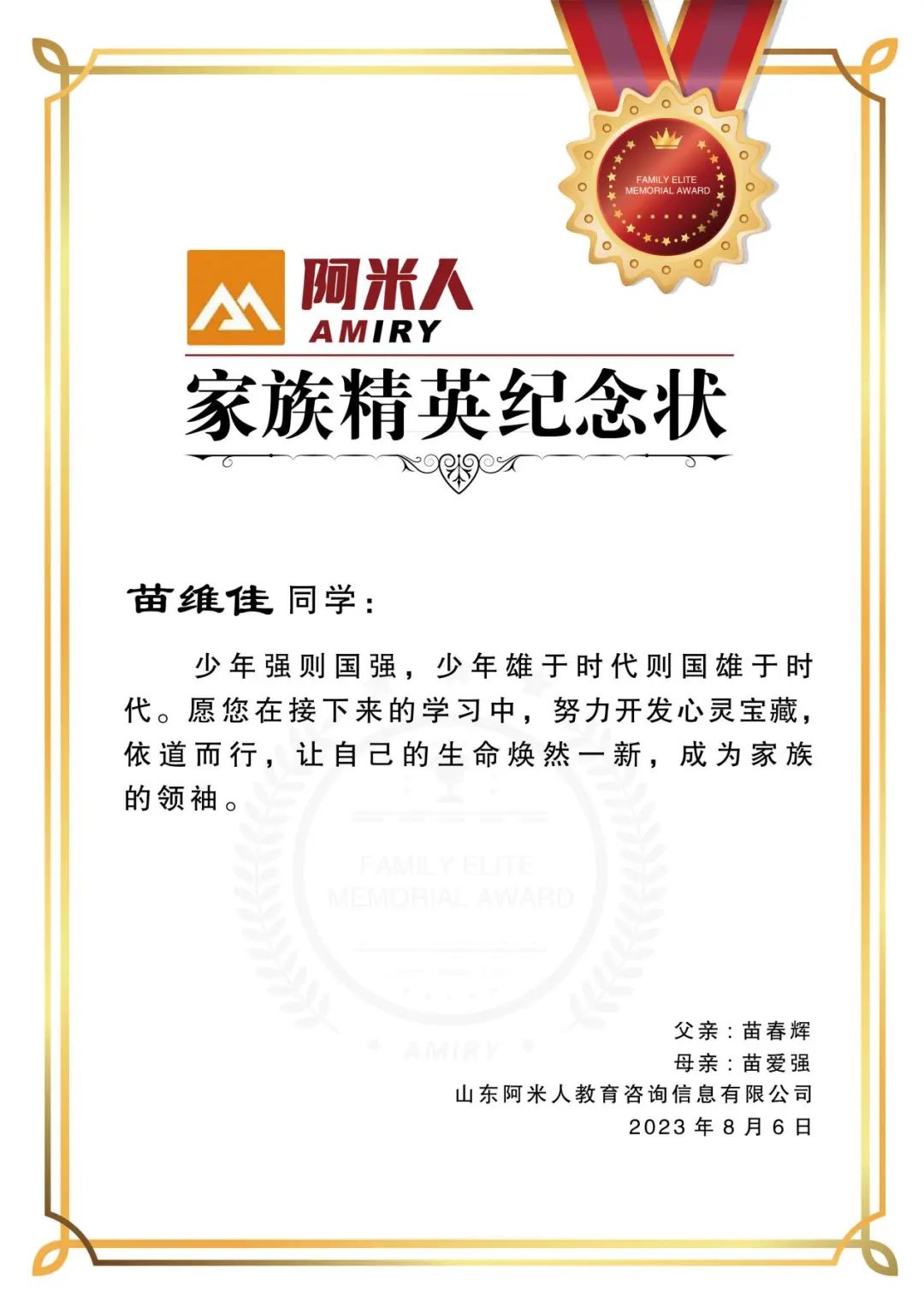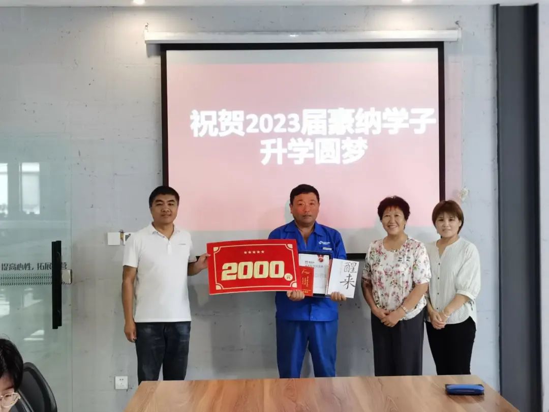 为祝贺青岛豪纳化工科技有限公司员工子女,在2023年高考中取得优异成绩,激励全公司员工子女发奋读书、励志成才,进一步增强员工对单位的认同感和归属感,集团公司及工会领导为员工“庆祝员工儿女金榜题名"。并诚挚的祝福今年金榜题名的孩子心想事成,成为奋斗的青年,早日成为国家的栋梁。分别为金榜题名的员工子女进行鼓励,颁发《家族精英纪念状》并每人给予2000元助学奖金。
