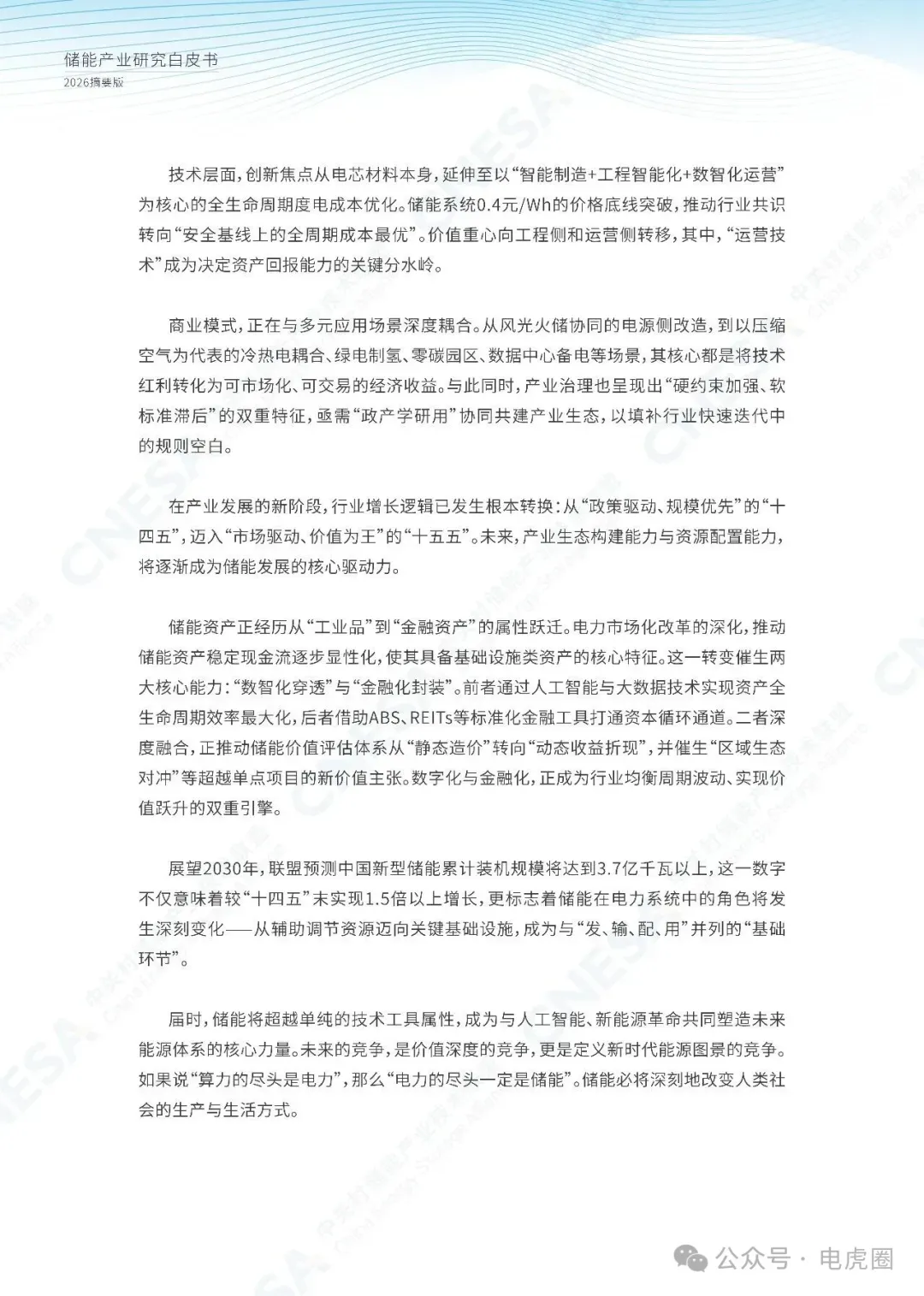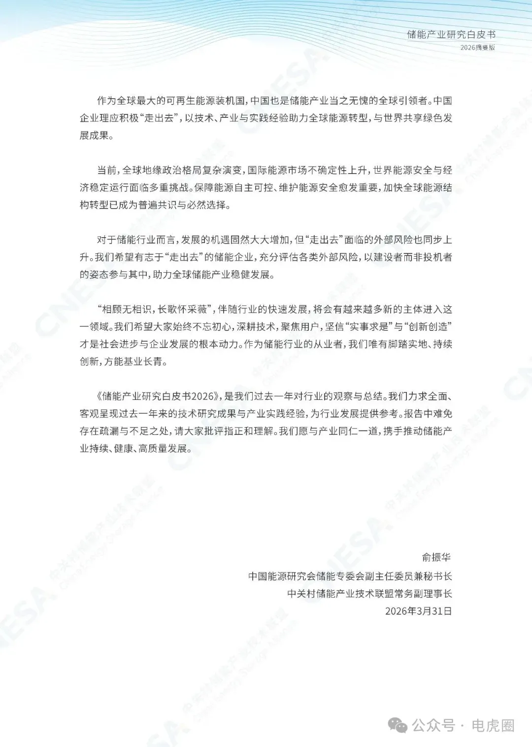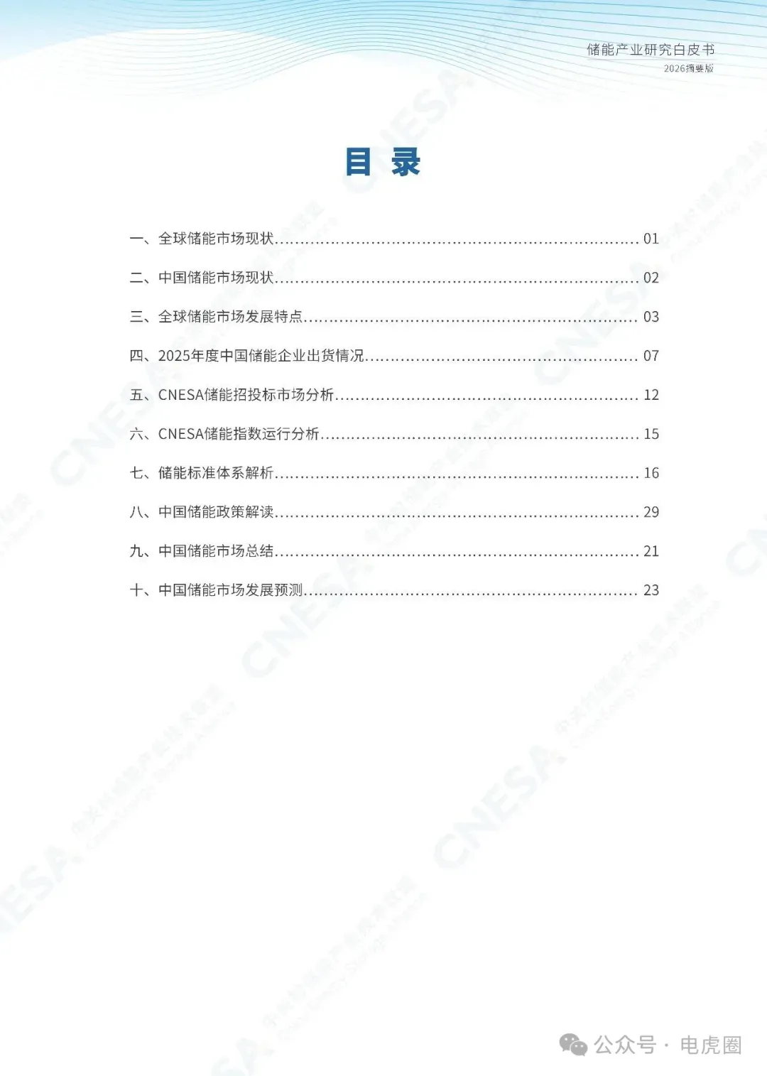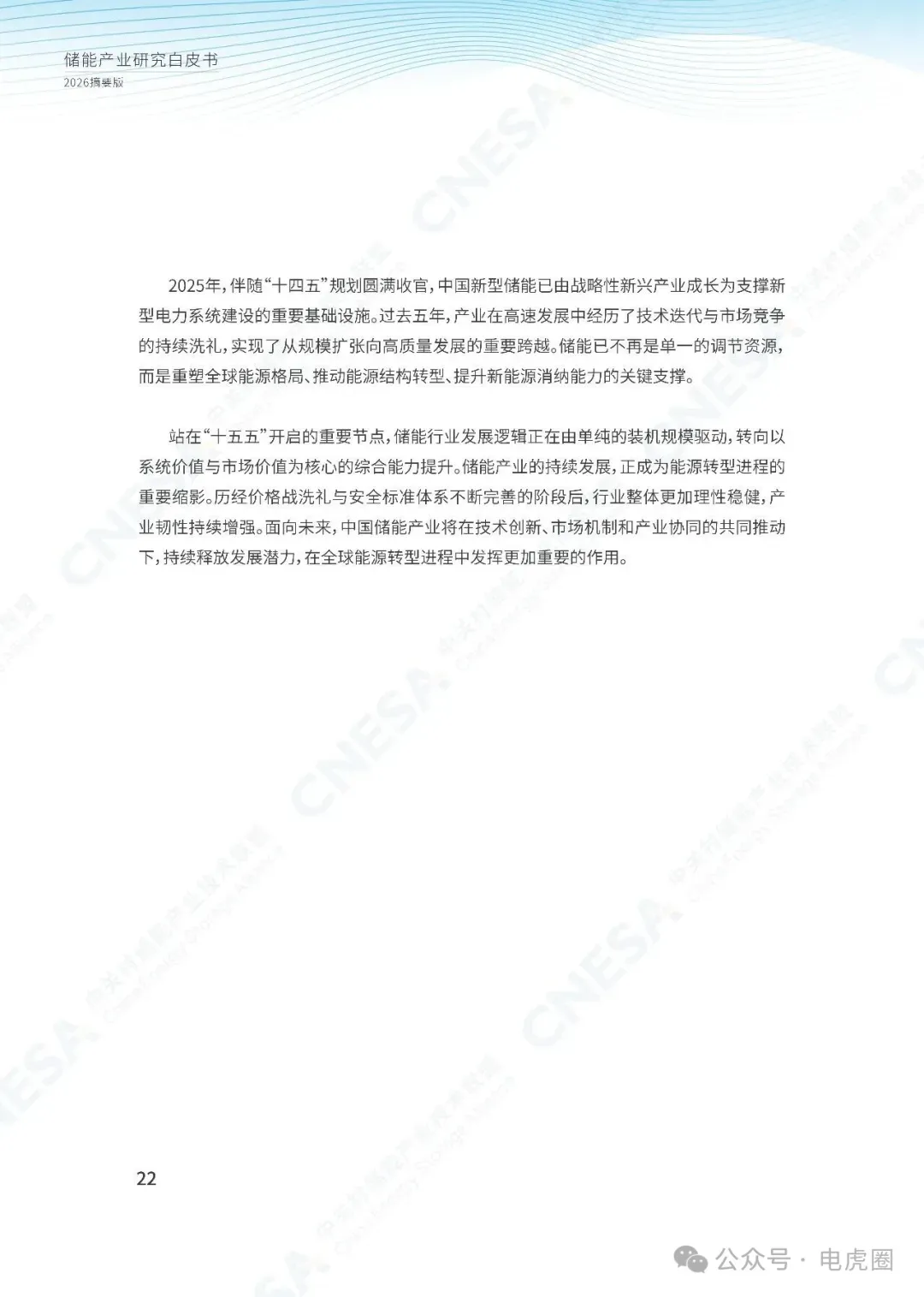 《储能产业研究白皮书2026》系统梳理并深入总结了全球主要国家和地区的市场规模、招中标市场及价格、企业出货与装机、典型企业订单与产品、政策与电力市场规则、储能安全与标准、投融资进展等多个维度,并结合当前产业格局与前沿技术趋势,对未来市场机遇与发展规模作出了前瞻性研判。