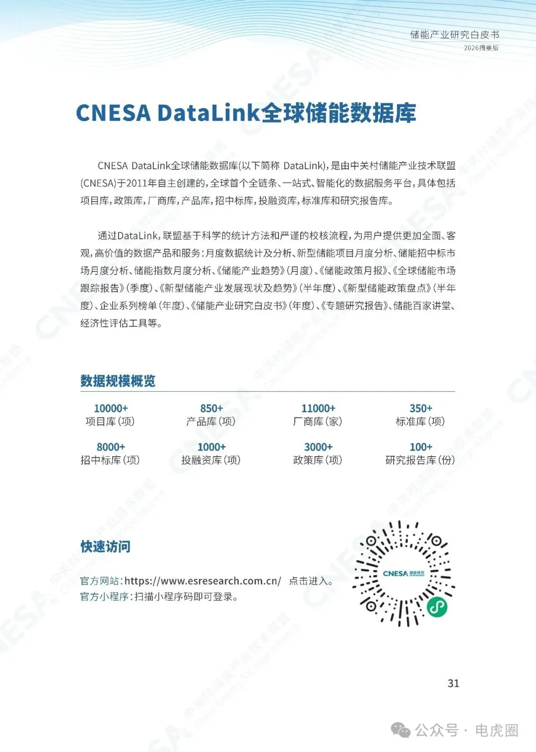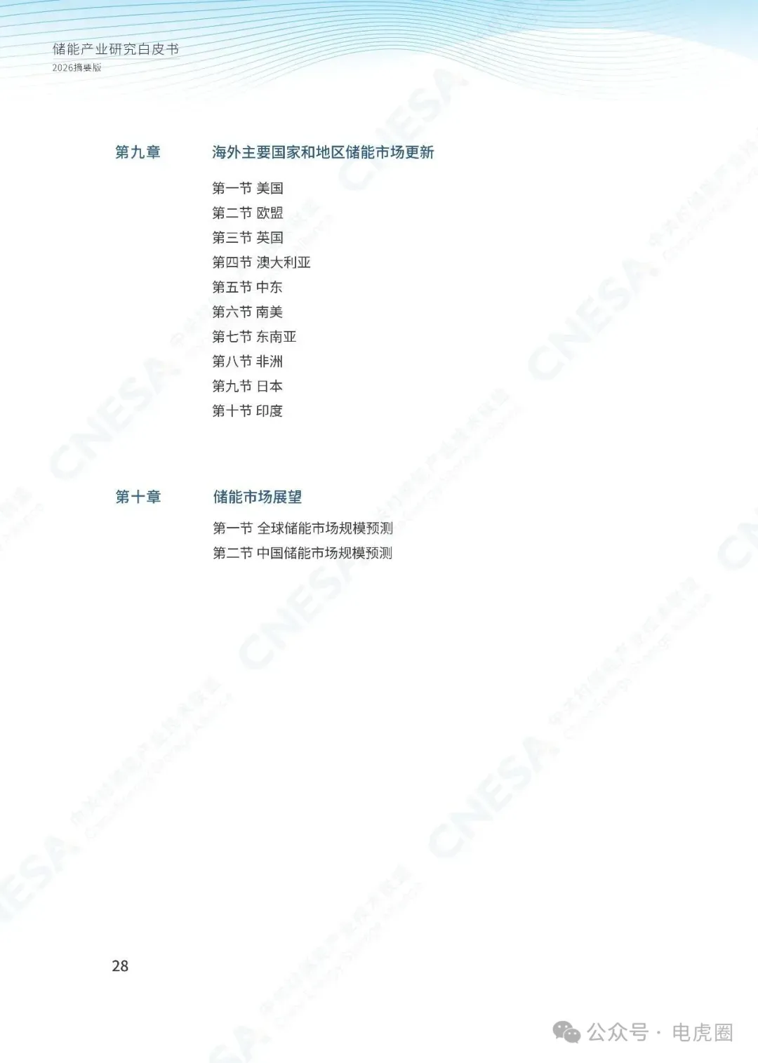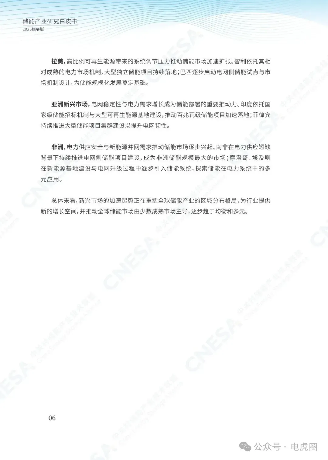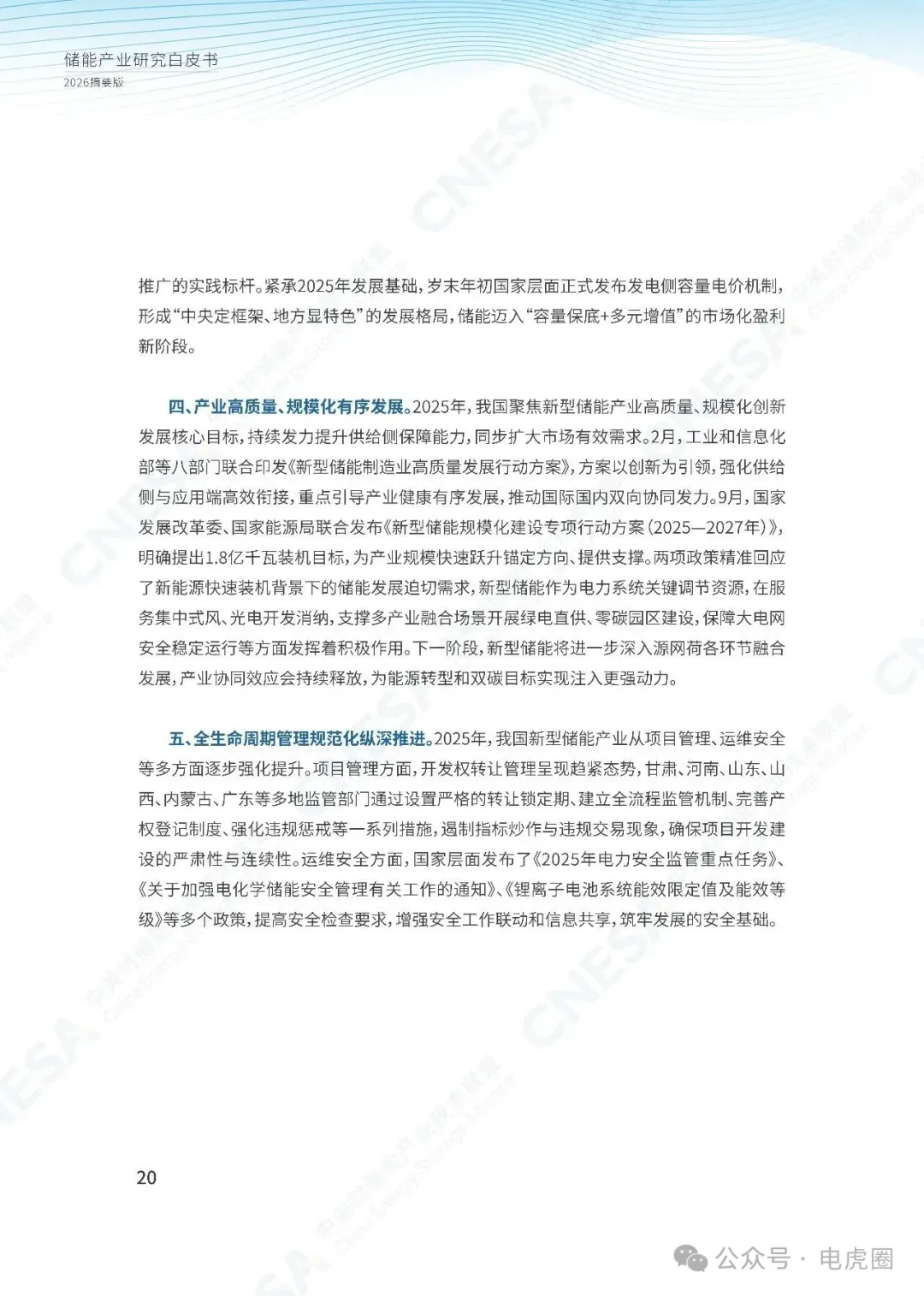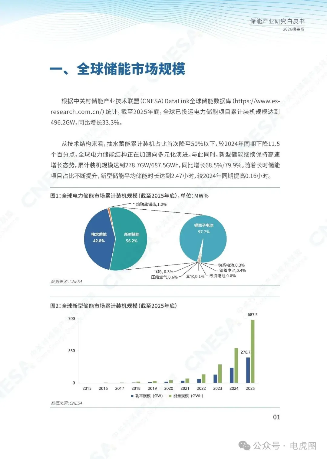 《储能产业研究白皮书2026》系统梳理并深入总结了全球主要国家和地区的市场规模、招中标市场及价格、企业出货与装机、典型企业订单与产品、政策与电力市场规则、储能安全与标准、投融资进展等多个维度,并结合当前产业格局与前沿技术趋势,对未来市场机遇与发展规模作出了前瞻性研判。