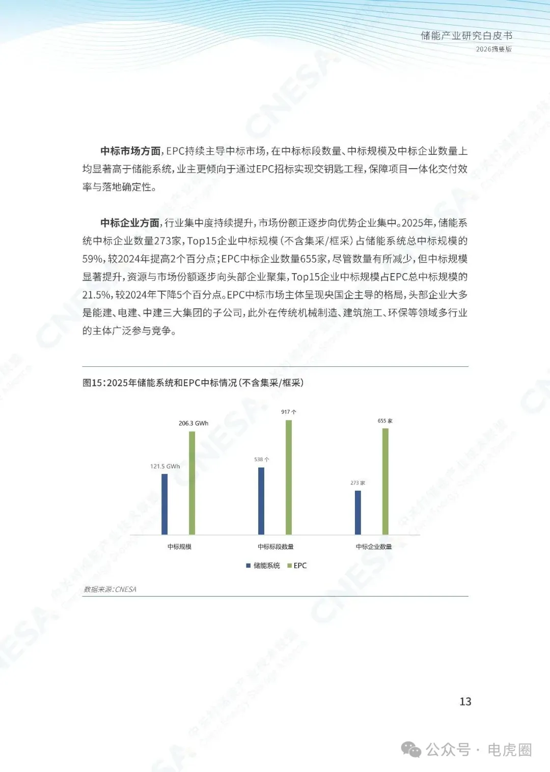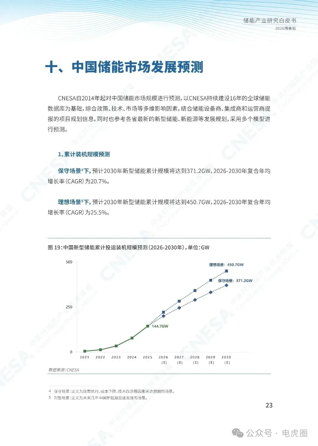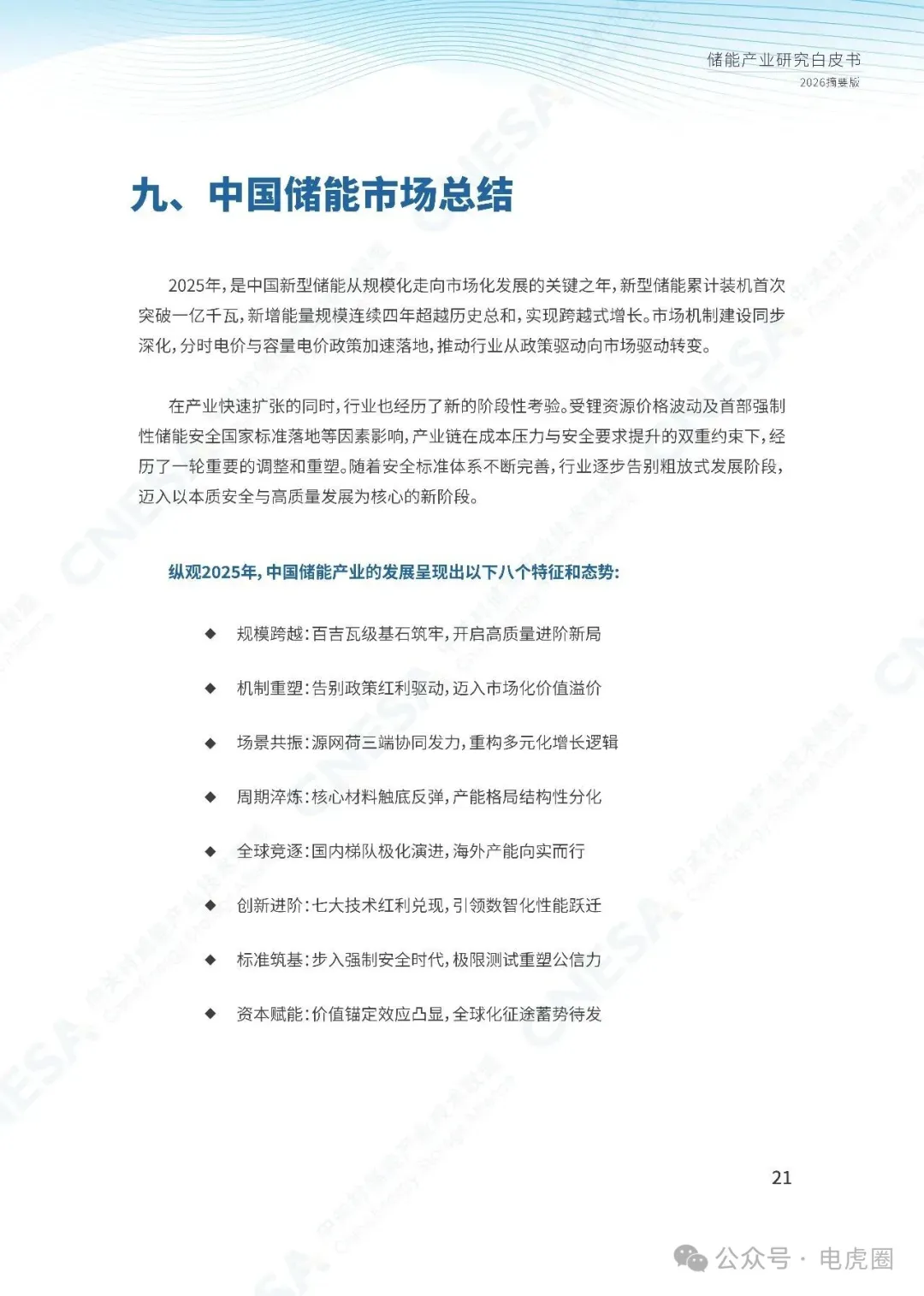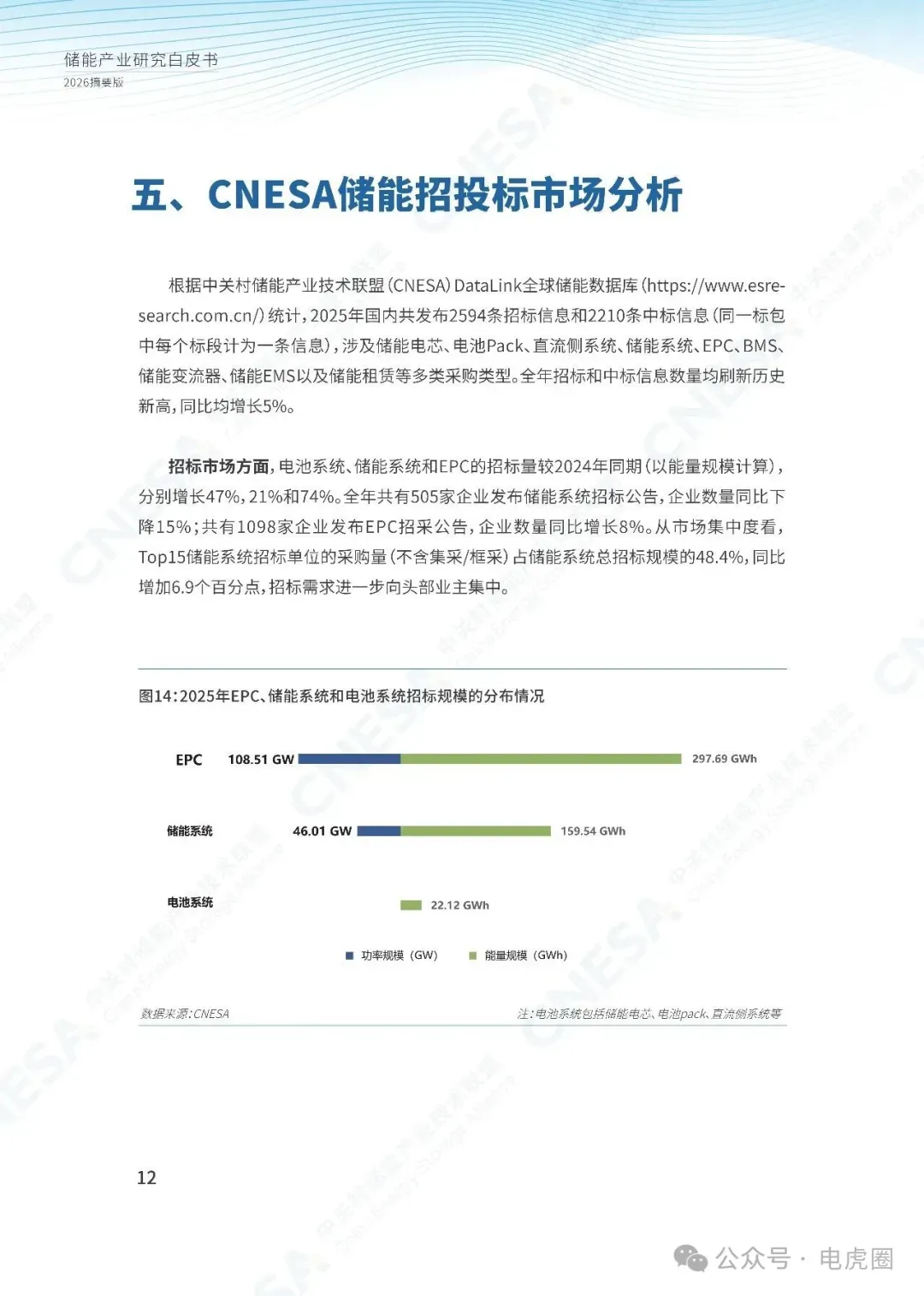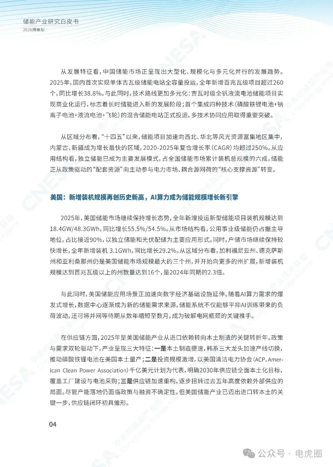 《储能产业研究白皮书2026》系统梳理并深入总结了全球主要国家和地区的市场规模、招中标市场及价格、企业出货与装机、典型企业订单与产品、政策与电力市场规则、储能安全与标准、投融资进展等多个维度,并结合当前产业格局与前沿技术趋势,对未来市场机遇与发展规模作出了前瞻性研判。