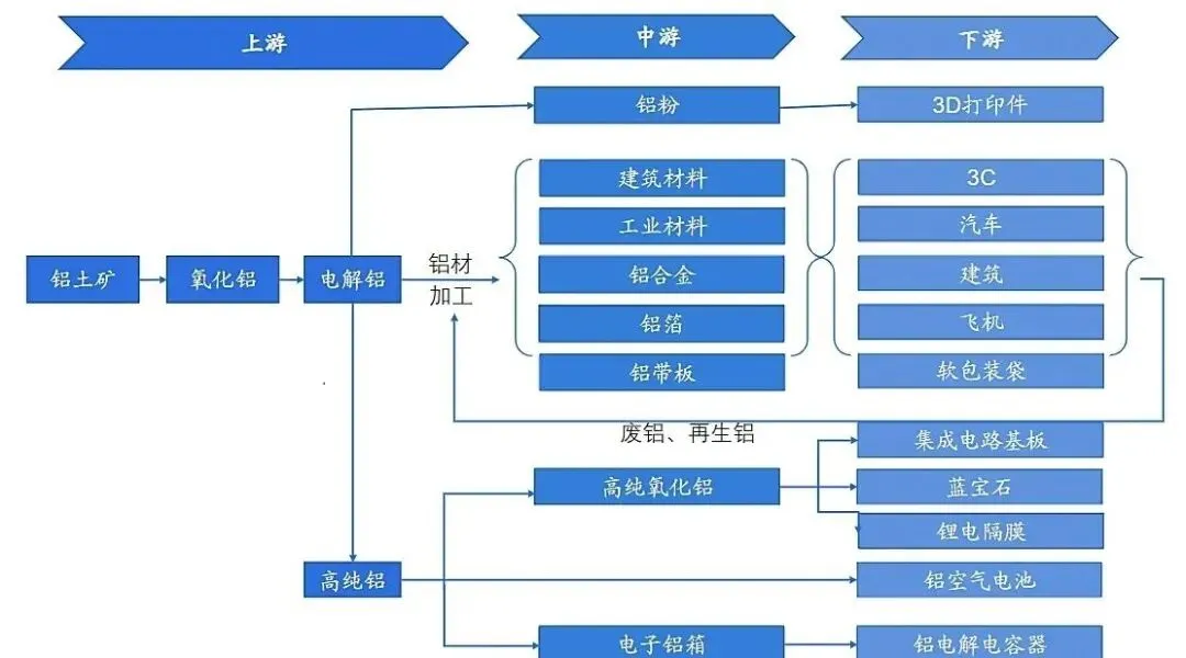 电解铝这个行业是比较简单的,产业链如下图: