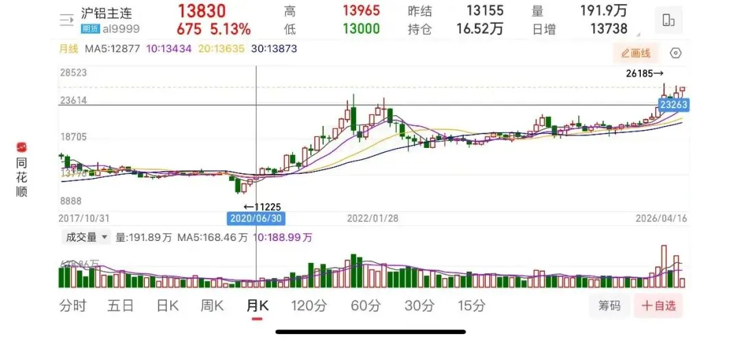 这一下子就解决了我国优势工业最常见的问题——内卷。总量以限制,你想卷卷不起来了,而在产能受限后,电解铝的价格确实中枢不断抬升,见下图: