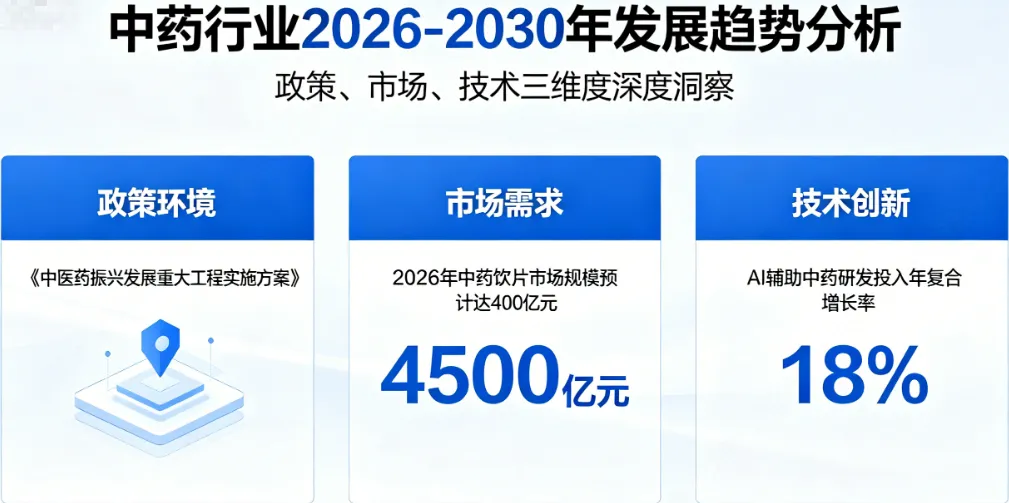 未来五年的核心发展主线可以概括为“一体两翼三驱动”:以中药创新药为主体,以智能制造和国际化为两翼,以政策、技术、消费为三大驱动力。关注具有创新能力、品牌优势和数字化布局的头部企业,以及中药创新药、智能制造、大健康消费品等高增长赛道,是把握行业发展机遇的关键。