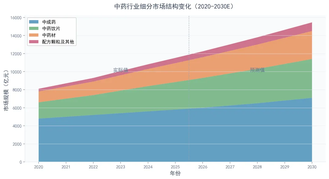 图 2:中药行业细分市场结构变化(2020—2030E)