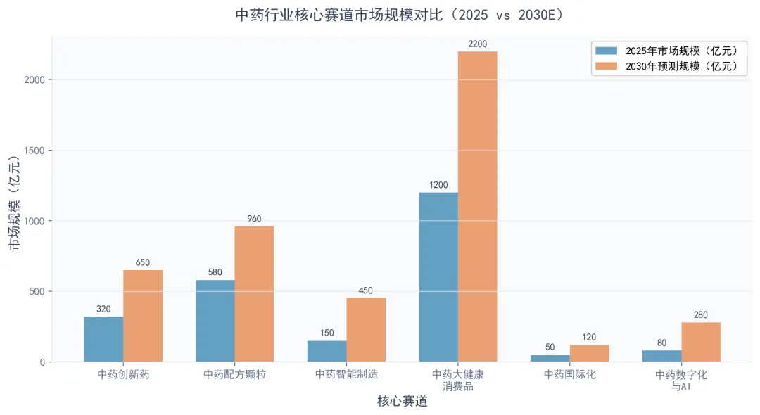 图 7:中药行业核心赛道市场规模对比(2025 vs 2030E)