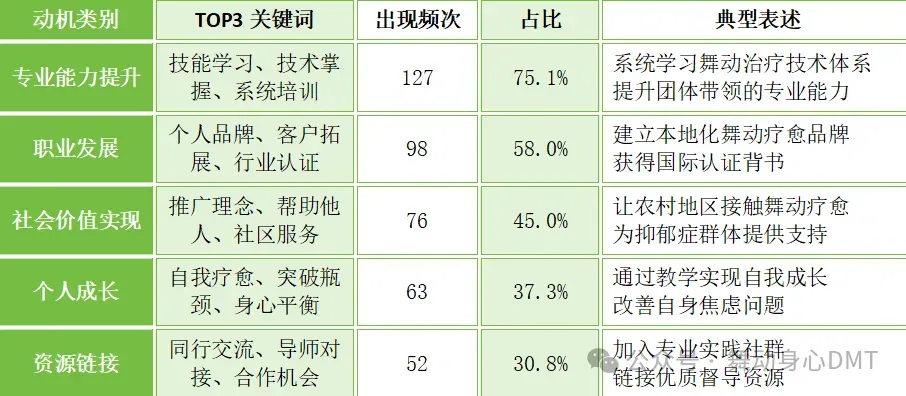 舞动治疗从业者则需要从被动学习转向主动实践,舞动治疗相关平台需要从简单的培训提供者转型为职业成长伙伴,双方共同构建良性发展的行业生态。