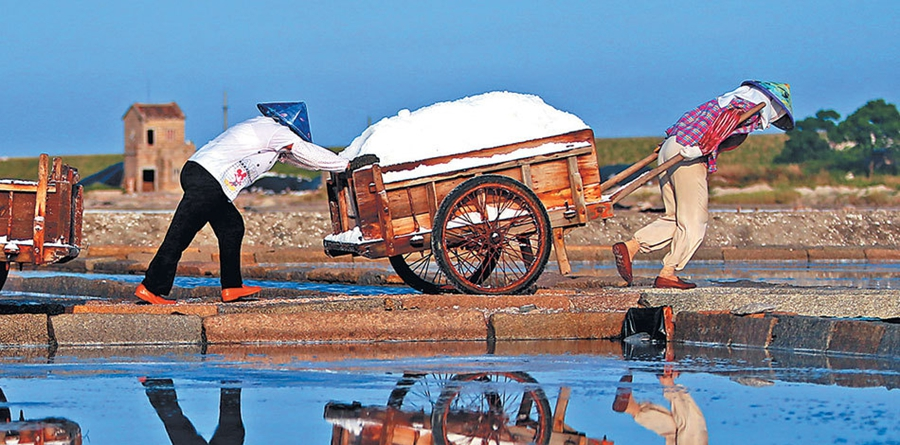采用传统物理工艺,天然日晒结晶,经粉碎、洗涤、脱水、烘干、筛分、