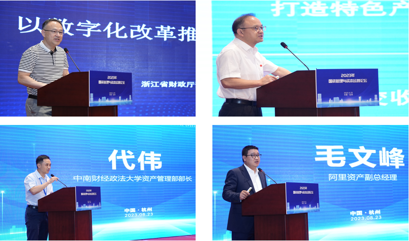 围绕“国有资产管理数字化转型与盘活实践”的研讨中,浙江省财政厅资产管理处副处长潘朝晖、湖南省财政厅资产管理处处长朱利平、中南财经政法大学资产管理部部长代伟、阿里资产副总经理毛文峰分别分享了浙江省以数字化改革推进国有资产盘活、湖南省国有资产盘活实践、高校国有资产管理及盘活利用、全域数字化服务国有资产交易的管理改革探索。