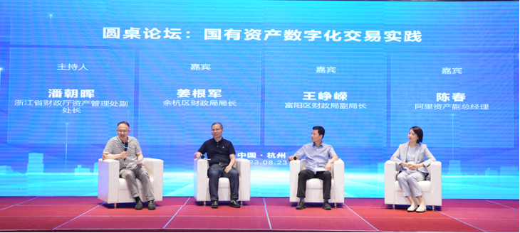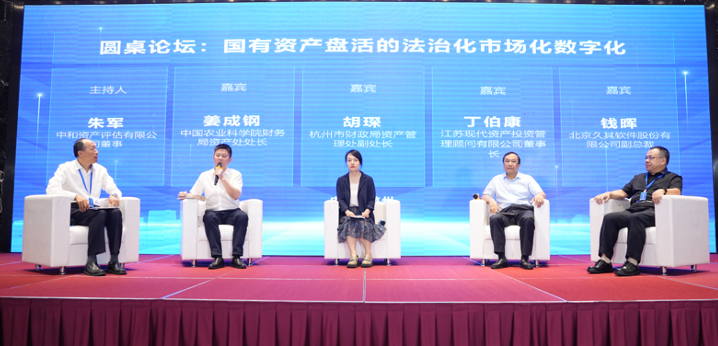 中和资产评估有限公司董事朱军和浙江省财政厅资产管理处副处长潘朝晖分别主持了“国有资产盘活的法治化市场化数字化”和“国有资产数字化交易实践”两个圆桌论坛。中国农业科学研究院财务局资产处处长姜成钢、浙江省杭州市财政局资产管理处副处长胡琛、浙江省杭州市余杭区财政局局长姜根军、浙江省杭州市富阳区财政局副局长王峥嵘、江苏现代资产投资管理顾问有限公司董事长丁伯康以及来自专业化数字服务机构的代表钱晖副总裁、陈春副总经理等参与圆桌讨论,分享实践做法,交流思路经验,凝聚广泛共识。