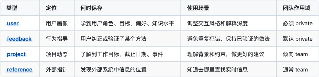 规则本身**Why:** 用户给出的原因(通常是过去的事故或强烈偏好)**How to apply:** 何时/何处应用此指导这种结构确保 LLM 在遇到边缘情况时能做判断,而非盲目遵循规则。project 类型的日期规范:所有相对日期必须转为绝对日期("Thursday" → "2026-03-05"),避免时间推移后记忆失效。