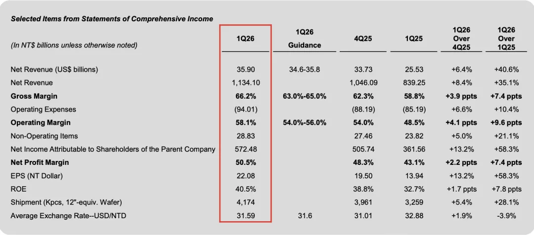 盘前,台积电发布Q1财报,营收359亿美元,同比增长40.6%,净利润181.2亿美元,同比增长65%(剔除汇率影响,增长58.3%)。
