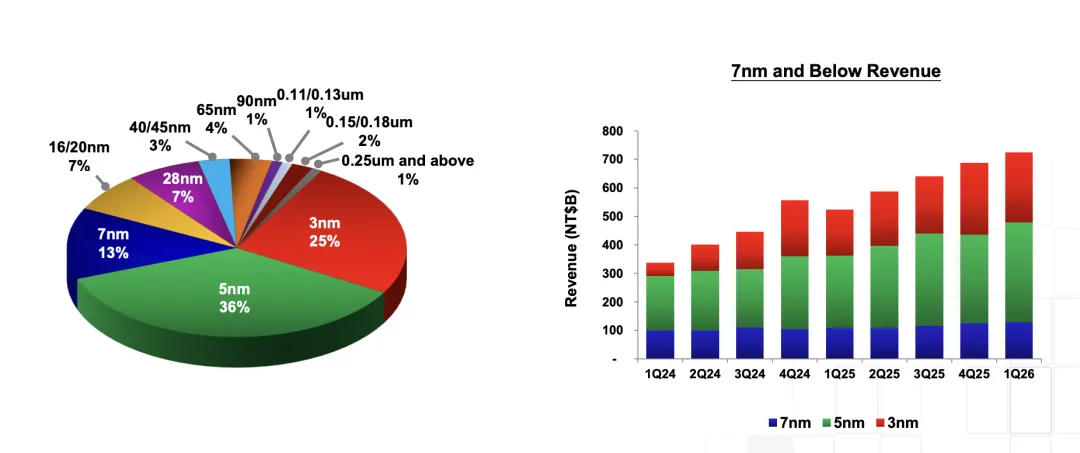 分制程看,3nm收入占比25%,5nm收入占比达到36%。7nm占比13%,先进制程占比合计达到74%。
