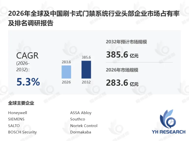 根据YH恒州诚思信息咨询调研统计,2025年全球刷卡式门禁系统市场规模约270.7亿元,预计未来将持续保持平稳增长的态势,到2032年市场规模将接近385.6亿元,未来六年CAGR为5.3%。