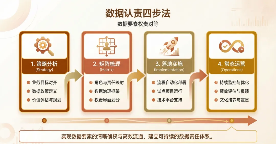 破解这一难题的核心在于构建一套权责对等的常态化运作机制。通过确立策略边界、精细编制认责矩阵、稳步推进落地实施以及建立持续运营反馈四个关键步骤,企业能够循序渐进地打通管理断层,形成切实有效的执行闭环。