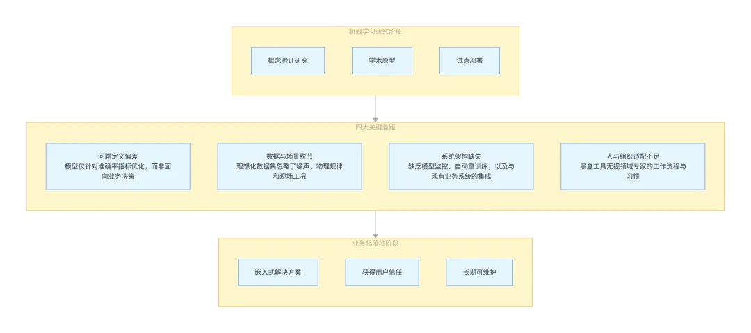 将机器学习研究转化为工业部署时,四个反复出现的差距始终存在(图1)。