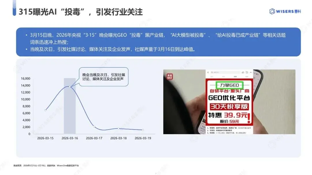 2026年的315晚会落下帷幕,晚会上曝光的GEO(生成式引擎优化)“投毒”事件,揭示了一条通过向AI大模型批量投喂虚假信息、操控搜索结果的产业链,引发了社会对AI投毒以及GEO的关注及热议。