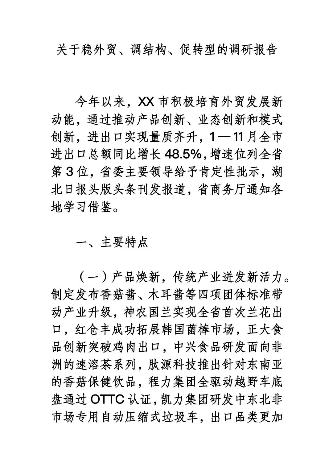关于稳外贸、调结构、促转型的调研报告