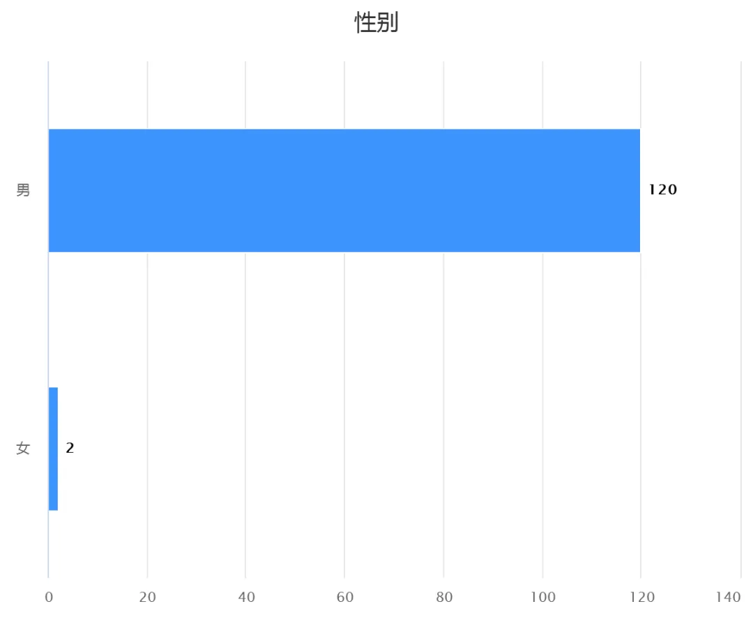 本次统计共覆盖血友病患者122人。其中男性患者120人,占绝对多数(98.4%),女性患者2人(1.6%),符合血友病X染色体连锁隐性遗传的疾病特征。从年龄结构看,患者群体涵盖全生命周期,其中学龄前儿童5人,在校学生43人,显示青少年及儿童患者占相当比例,凸显早期诊断、规范治疗及青少年健康管理的重要性。(见图1、图2)