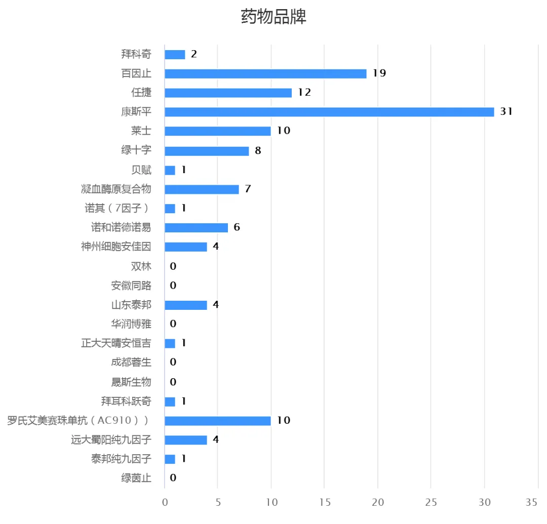 - 治疗药品:用药呈现多元化,涵盖国内外多家企业的重组和人血来源凝血因子。值得注意的是,有10名患者使用自费的艾美赛珠单抗,显示部分患者对创新治疗手段有需求,但高昂费用限制了普及。(见图10、图11)