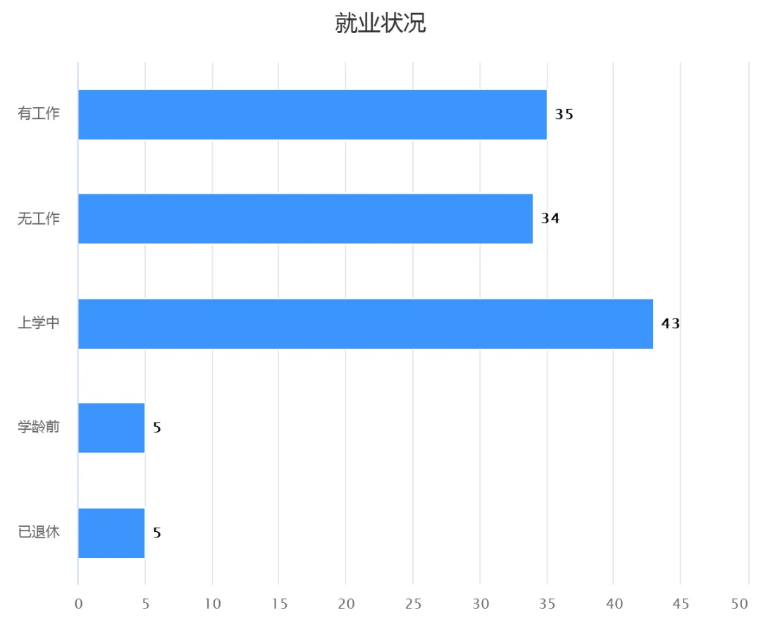- 就业与学业:成年患者(含退休)中,有稳定工作者35人,无工作者34人,就业形势严峻。同时,在校学生达43人,凸显了对血友病患儿教育支持、校园关怀及未来职业规划的重要性。(见图17、图18)
