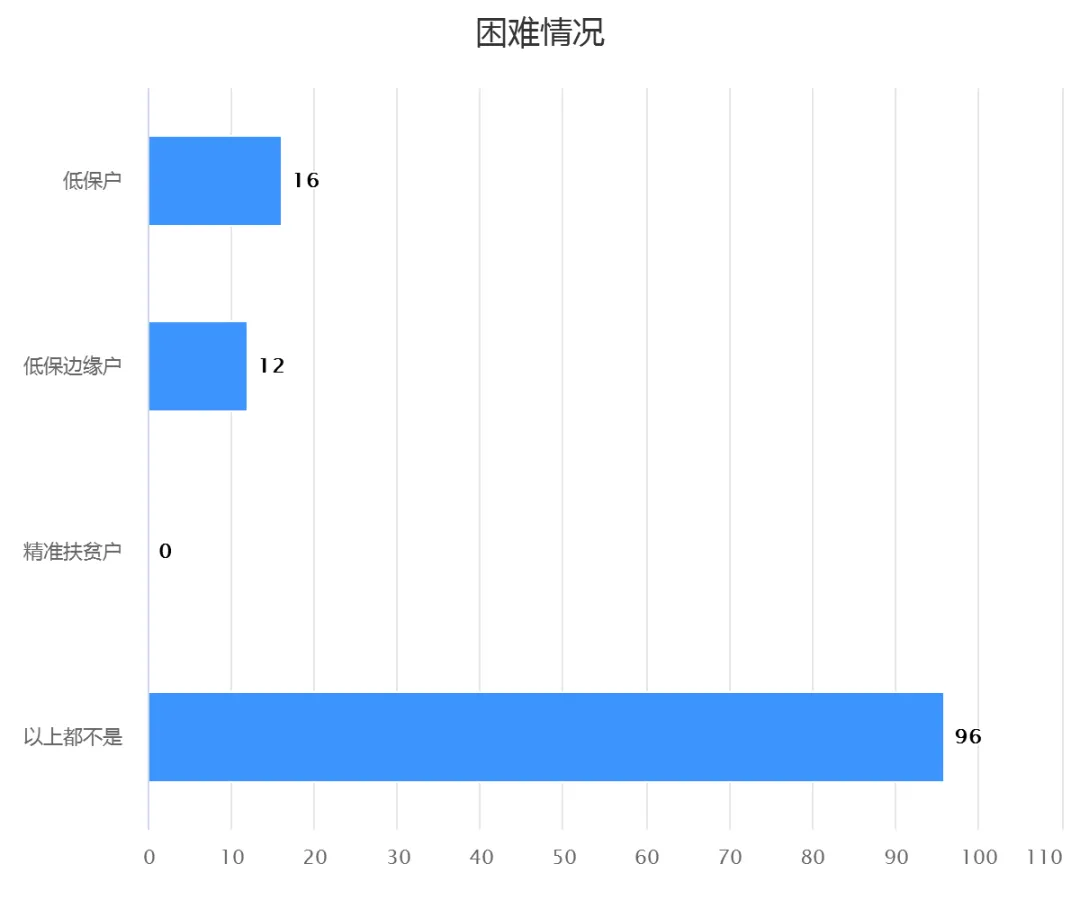 - 经济困难状况:低保户16人,低保边缘户12人,合计占比23%。这反映了血友病对家庭经济的显著冲击。(见图19)