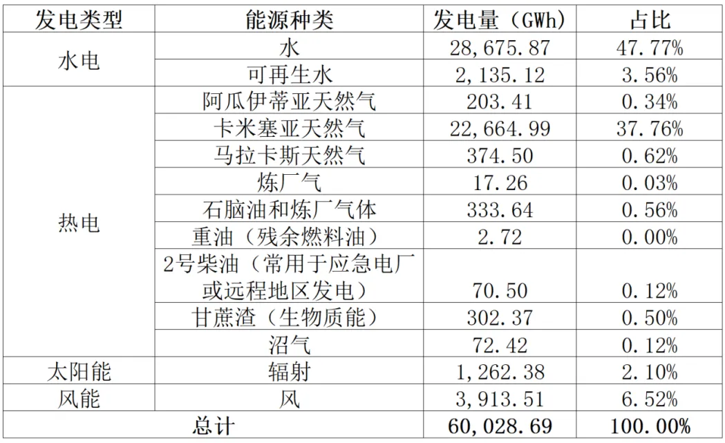 目前,秘鲁电力企业提供的电力按能源类型主要分为如下几类: