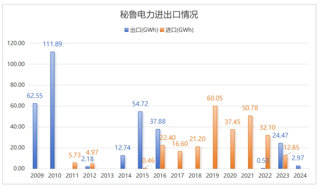 2024年,秘鲁最大负荷为7,794.01 MW,而有效容量达13,791.86 MW,高出最大负荷76.95%。造成能源供应与需求错配的主要原因如下: