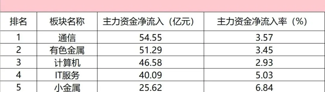 二,板块方面,今(16)日,主力资金净流入通信、有色金属、计算机等板块,分析整理如下: