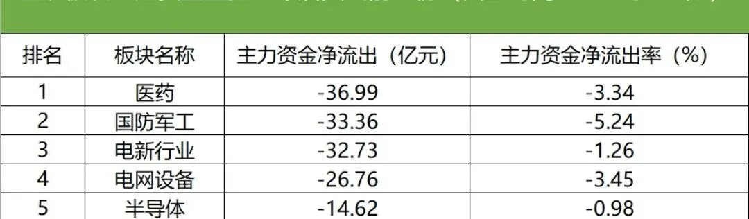 三,板块方面,今(16)日,主力资金净流出医药、国防军工、电新行业等板块,分析整理如下: