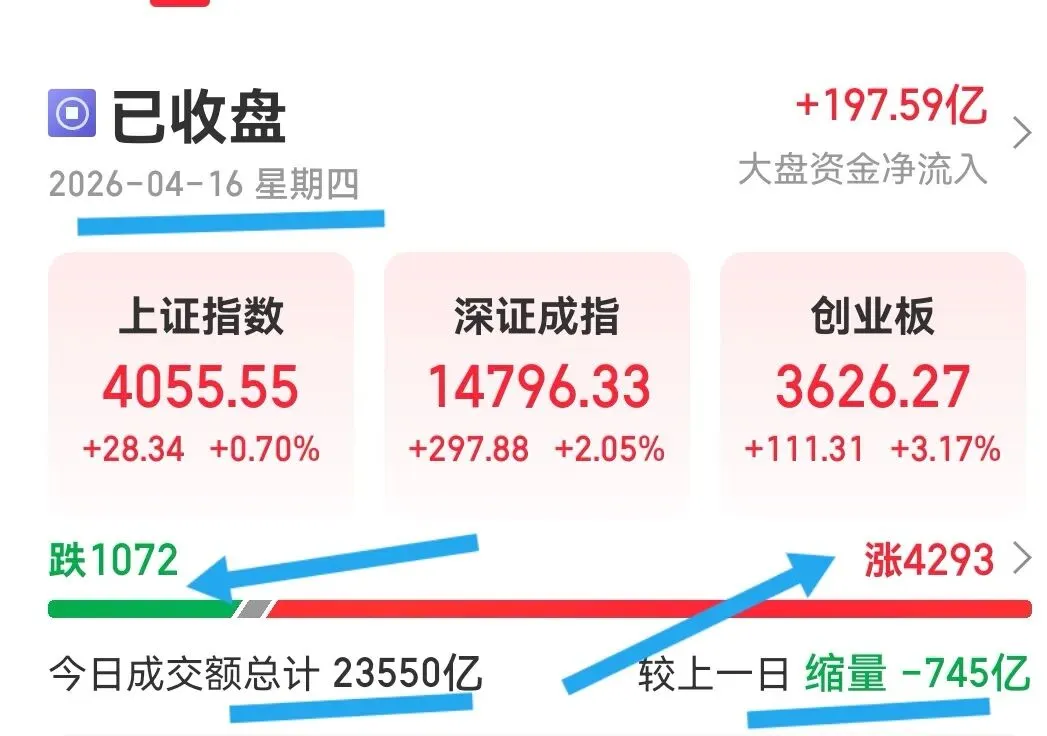 六,中国A股收盘摘要,4月16日(周四)A股截止收盘: