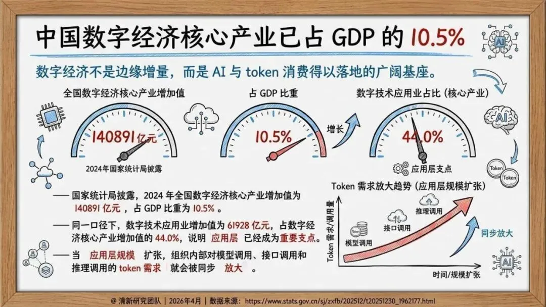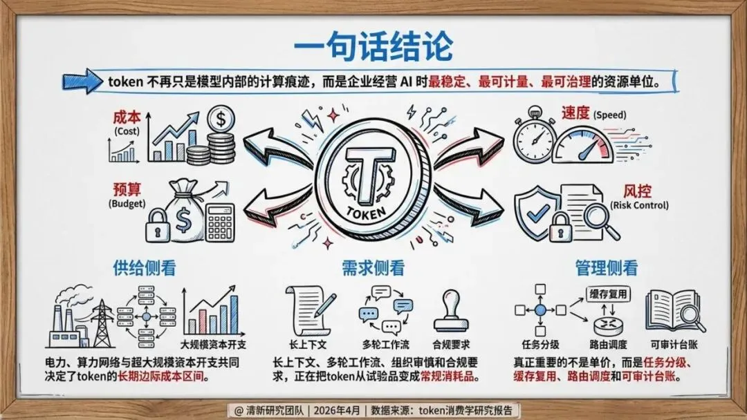 2026年数字经济与AI产业规模化落地,Token已从大模型内部计算单元,演进为企业AI经营中可计量、可治理、可优化的核心资源,Token消费学由此成为独立经营议题。从供给侧看,电力、算力网络与超大规模资本开支划定Token长期边际成本区间,全国一体化算力调度、公共云与开源生态推动供给效率提升;从需求侧看,长上下文、多轮工作流、组织审慎合规需求,让Token从试验品转为常规消耗品,企业AI嵌入深度直接驱动Token消费非线性增长。