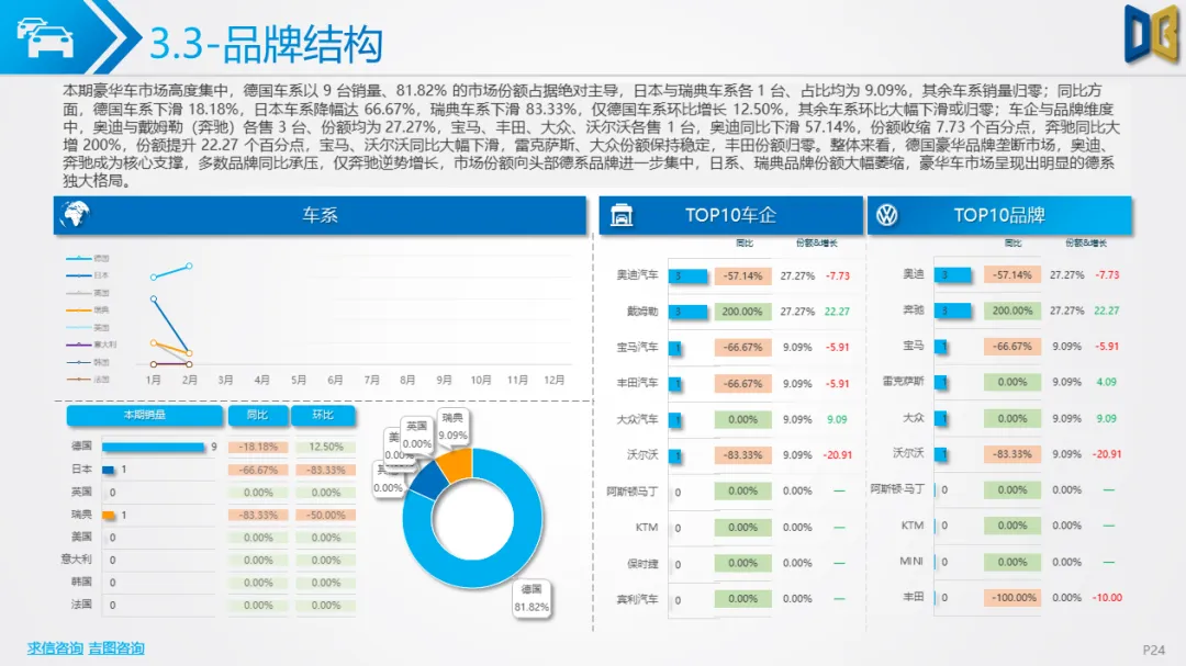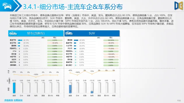 进口乘用车市场体量极小,累计仅 29 台,同比腰斩,德系豪华品牌(奔驰、奥迪)垄断,以中大排量燃油轿车、SUV 为主,新能源渗透率为 0,完全依赖传统高端燃油车型,MPV 市场近乎空白。