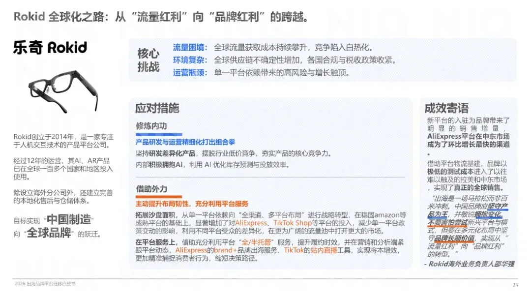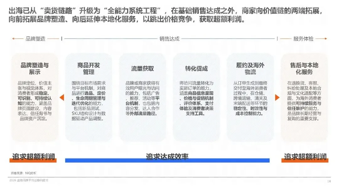 品牌出海需构建全链路解决方案,从品牌塑造、商品开发、流量获取到履约配送、售后服务,每个环节都至关重要。案例显示,通过多平台发展与精细化运营,品牌能实现全球化进阶,从“流量红利”转向“品牌红利”。未来,品牌卖家需深入研究目标市场,制定精细化运营策略,以抢占市场先机。